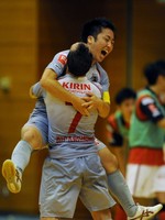 しかし残り40秒、思わぬ形でゴールが決まる。左CKからの流れで、右サイドにいたFP森秀太にパスが入る。森が素早く折り返したボールは、PA内にいた浦安の選手に当たり、ゴールへと転がった。ピッチ上では、殊勲の森をFPリカルジーニョが高々と抱き上げていた。